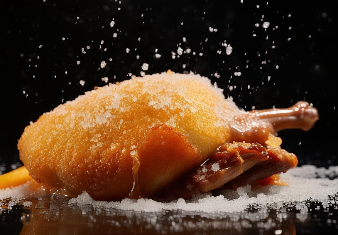 金黄酥脆的鸭皮蘸上细白糖,入口瞬间迸发奇妙变化。滚烫油脂裹着砂糖,在舌尖融化成温润甜香。酥脆与绵密交织,咸香与清甜碰撞,层次分明又完美融合。糖粒的微沙感衬托出鸭皮的松化,甜味巧妙中和了油腻。这种独特吃法让传统烤鸭焕发全新魅力,每一口都令人难忘。