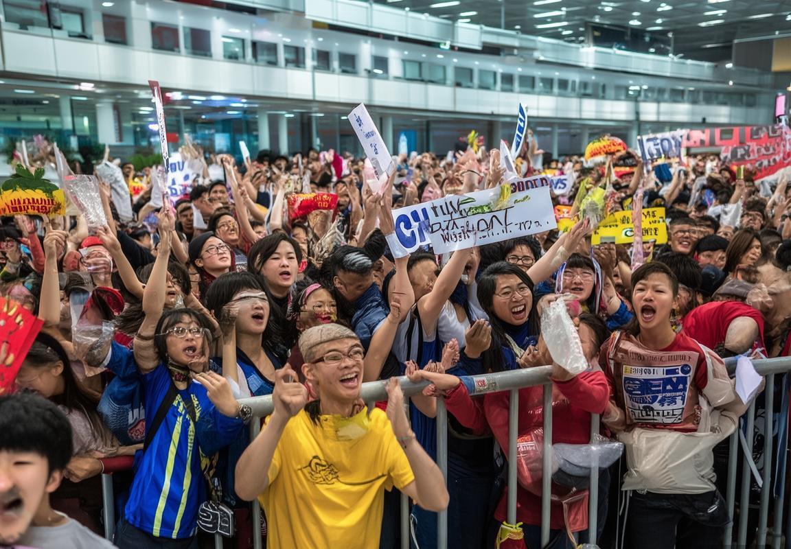 数百名粉丝高举GEN战队应援牌和手幅,将机场国际到达口围得水泄不通。人群中爆发出阵阵欢呼,整齐呼喊着选手的名字。年轻粉丝们手举“欢迎冠军回家”“GEN世界第一”的发光横幅,激动地踮脚张望着出口方向。每当有队员身影出现,现场立刻响起热烈掌声与尖叫,不少粉丝送上早已准备好的花束与礼物。